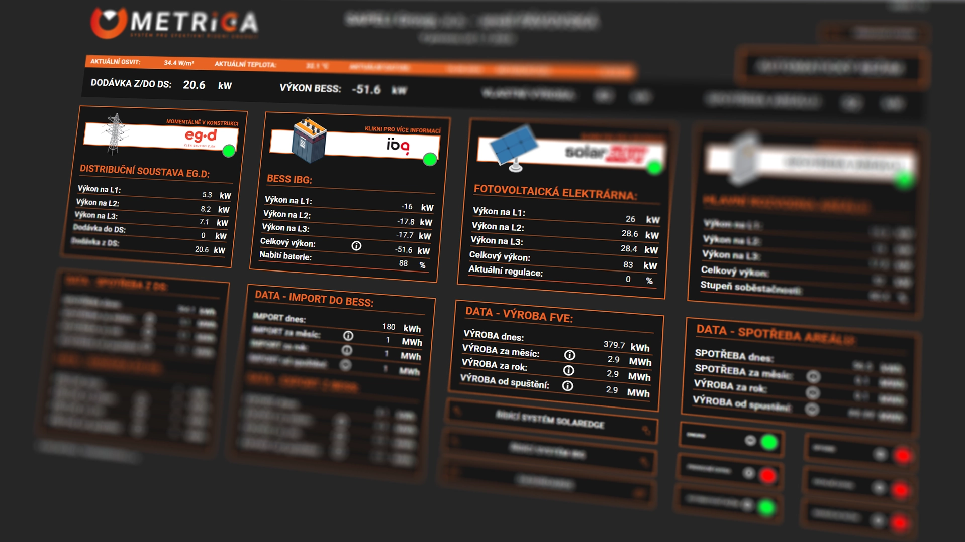 Naše pokročilé systémy umožňují nepřetržité sledování a analýzu výkonu FVE, BESS a dalších zdrojů v reálném čase, což vám umožňuje optimalizovat jejich provoz. Získáte přesná data pro efektivní řízení a maximální využití dostupných energetických zdrojů.